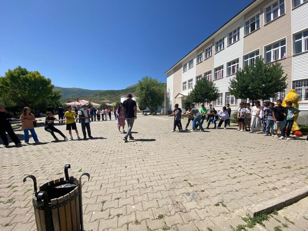 Güroymak Gençlik Merkezi’nden gelen ekipler, okul bahçemizde öğrencilerimizle birlikte unutulmaz bir gün geçirdi. Etkinlikler kapsamında çuval yarışı, halat çekme, hedefe top sürme, ok atma ve daha pek çok fiziksel oyun oynandı. Öğrenciler, oyunlar boyunca hem fiziksel olarak aktif oldu hem de sosyal becerilerini geliştirme fırsatı yakaladı.